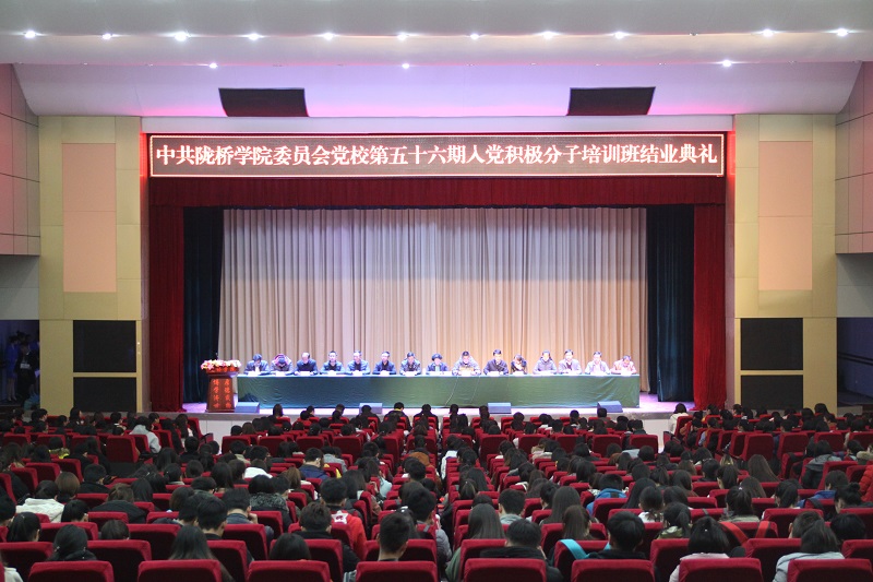 11月23日下午,陇桥学院党委党校在学术报告厅举行了第五十六期入党积极分子培训班结业典礼。学院党委书记王新兰,党委副书记、副院长马义哈,党委委员、副院长杨培权,副书记、党校校长郇东,党委委员梁磊、胡国霞、刘伟及各党总支书记出席典礼,各系党务秘书、党委工作部老师及全体培训学员共690余人参加了典礼。典礼由党委副书记、党校校长郇东主持。