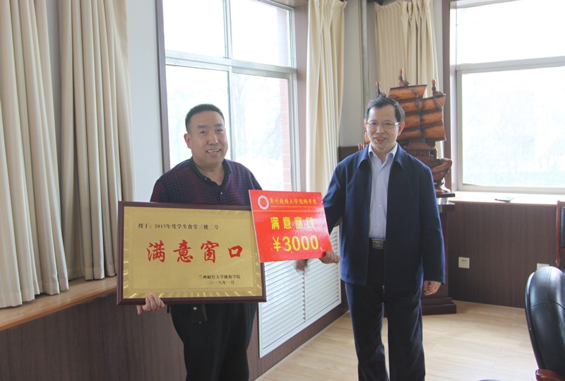 会上,后勤管理处负责人宣读了《关于表彰2017年食堂工作先进集体及个人的决定》。接着,路院长为获得“满意窗口”的1家学生食堂、“服务育人先进个人”的2名经营者、“厨艺之星”的6名厨师、“服务之星”的13名服务员颁发了荣誉证书和奖金。获得“厨艺之星”的1名厨师作为获奖代表发言。