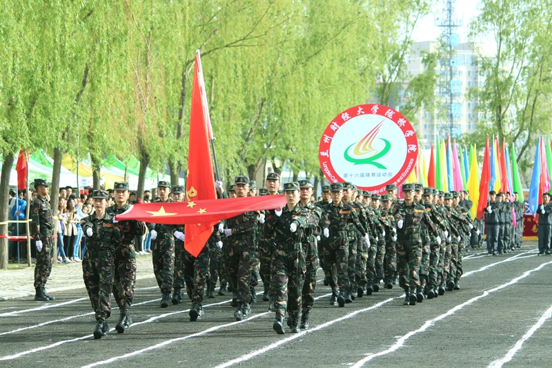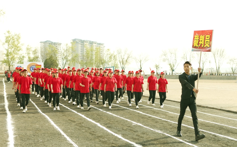 田径场上,彩旗飘飘,欢声雷动。伴随着激昂的进行曲,国旗护卫队、彩旗方队、运动员方队、教工方队等在内的14支队伍迈着矫健的步伐依次走过主席台。他们步伐坚定有力、动作整齐划一、口号个性鲜明,表现出陇桥师生阳光向上、奋勇拼搏的精神面貌。方队入场完毕后,学院院长路文江教授致开幕词,他预祝本届运动会取得圆满成功,希望全体裁判员树立安全第一意识,公正判决,为各项竞赛创造良好的工作氛围;希望全体运动员赛出风格、赛出水平,胜不骄、败不馁,并向为此次大会付出辛劳的全体人员表示衷心的感谢。