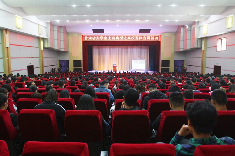 为深入贯彻习主席给南开大学新入伍大学生回信精神,进一步强化大学生国防观念,激发大学生参军入伍热情。4月25日下午,由省政府征兵办、省教育厅共同主办的“甘肃省大学生士兵典型进高校巡回宣讲活动”在学院学术报告厅隆重举行。兰州警备区动员处处长张明春、兰州财经大学国防教育办公室主任拜伍旭、城关区人民武装部部长李岁劳、城关区人民武装部政委郝修杰、兰州警备区动员处参谋尤洋、学院副院长杨培权出席了会议,各党总支负责人、辅导员老师和800余名学生代表参加了会议,大会由学院党委副书记、学生处处长郇东主持。
