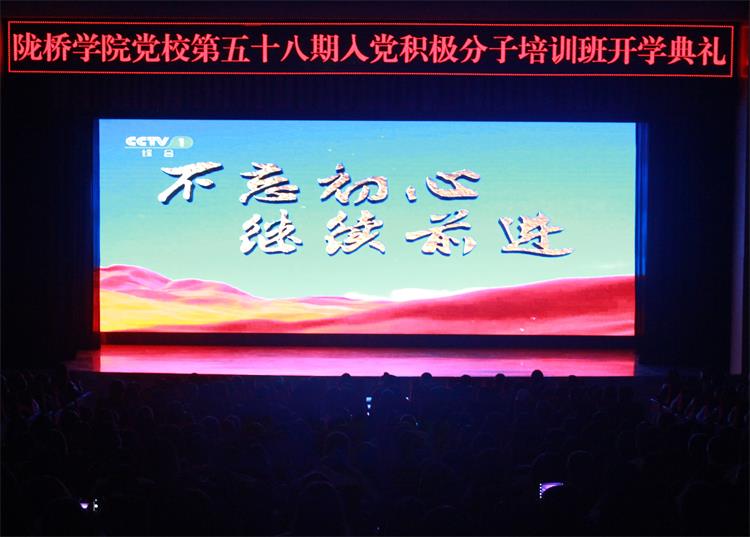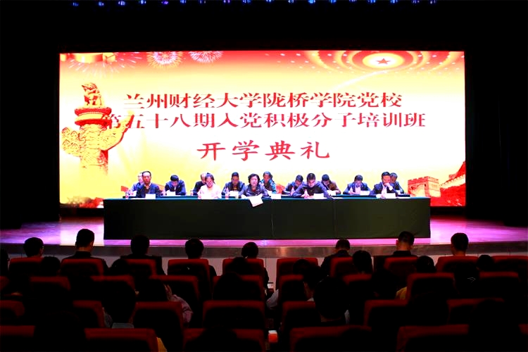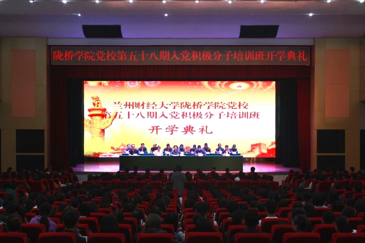 10月10日下午,陇桥学院党委党校第58期入党积极分子培训班开学典礼在学术报告厅举行。学院党委书记王新兰,党委副书记、副院长马义哈,党委委员胡国霞、梁磊、刘伟,各党总支书记出席典礼,各系党务秘书、党委工作部老师及全体培训学员共700余人参加了典礼。典礼由党委副书记、副院长马义哈主持。