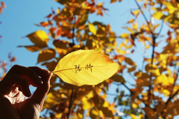 被头顶忽然的落叶而停顿,把它小心收进书中的样子!