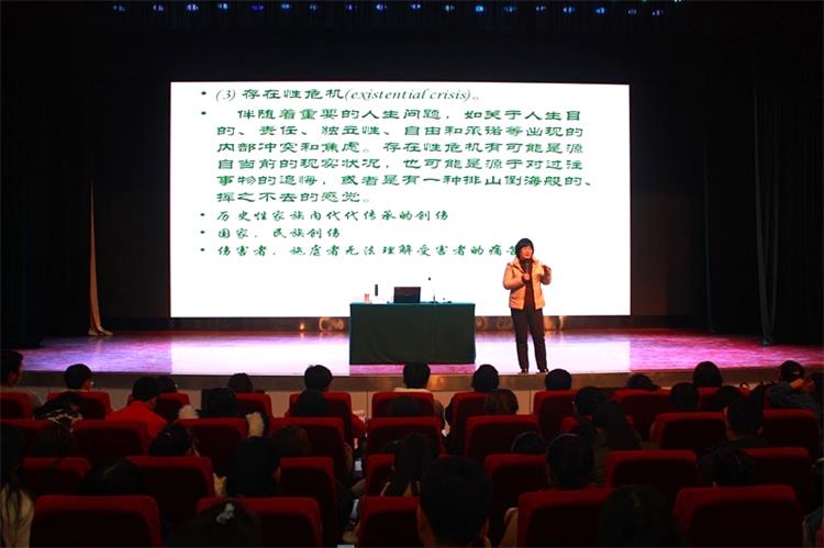 为贯彻落实《精神卫生法》、《“健康中国”2030》和《关于加强心理健康服务的指导意见》。11月8日下午,兰州财经大学王立冬副教授给我院大学生做“大学生心理危机预防与干预”的主题讲座。讲座由我院大学生心理健康教育与咨询中心主任孙育老师主持。 讲座过程中,王老师首先就大学生心理危机的概念进行解释,心理危机是一种认识,是当事人认为某一件事或境遇是人个的资源和应对机制所无法解决的困难;其次,结合大学生的现实情况,对成长性危机、情景危机、存在性危机进行了详细的讲解。进而,针对大学生中可能出现的心理危机的事件的原因进行了梳理,结合她长期工作的经验和实例分析,让大学生更加理解心理危机带给当事人的内在冲突和焦虑。最后,给大家提出应对心理危机的方法,就是积极寻求帮助。通过亲人、同学、朋友、老师、心理咨询或其它的社会团体和个人,寻找到一条适合自己的减压、释放、缓和、坦然之路。 整个讲座气氛热烈,效果良好。我院大学生心理健康教育活动将会持续进行。
