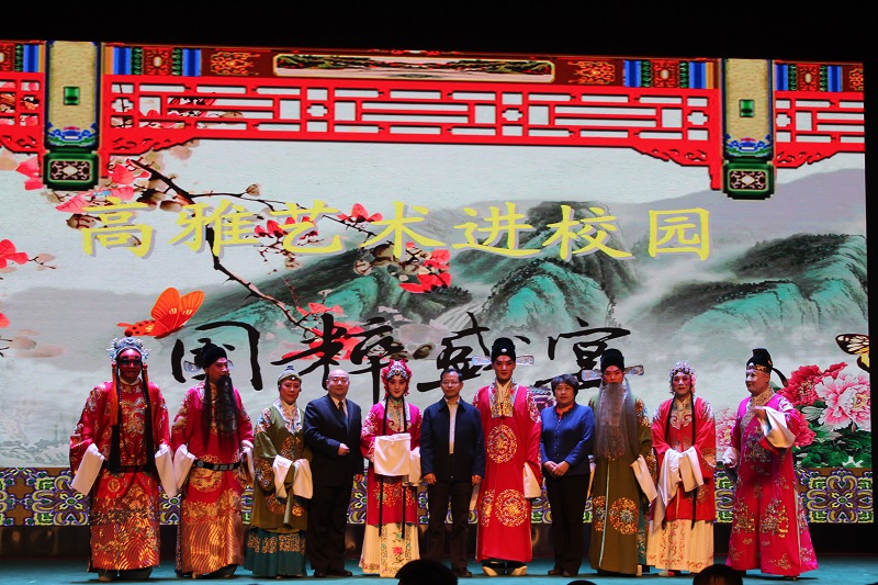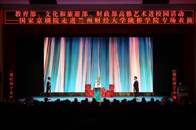 为进一步丰富校园文化生活,提升学生的艺术素养,近日,教育部、文化和旅游部、财政部高雅艺术进校园活动暨国家京剧院走进陇桥学院专场表演在我院学术报告厅举行。国家京剧院一级演员、国家京剧院一团常务副团长脱志国、党委书记王新兰教授、学院院长路文江教授、副院长杨培权同志、党委副书记郇东同志及800余名师生到场观看了本次艺术表演。
