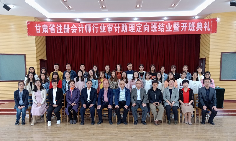 为培养复合型专业审计人员,北京中瑞诚会计事务所甘肃分所面向我院会计学系2016级审计专业学生成立甘肃省注册会计师行业审计助理定向班,并于4月28日上午在学术报告厅三楼举行了甘肃省注册会计师行业审计助理定向班第一期结业暨第二期开班典礼。甘肃省财政厅会计处处长刘贞彦,甘肃省注册会计师协会秘书长罗刚,北京中瑞诚会计师事务所甘肃分所所长张自霞、甘肃广合会计师事务所副所长刘慧霞、瑞华会计师事务所甘肃分所合伙人李积庆,南京欣博职业技能培训有限公司董事长张莫,学院副院长燕宏,副院长杨培权,会计学系主任李菊香,副书记陆海峰出席了本次开班仪式。