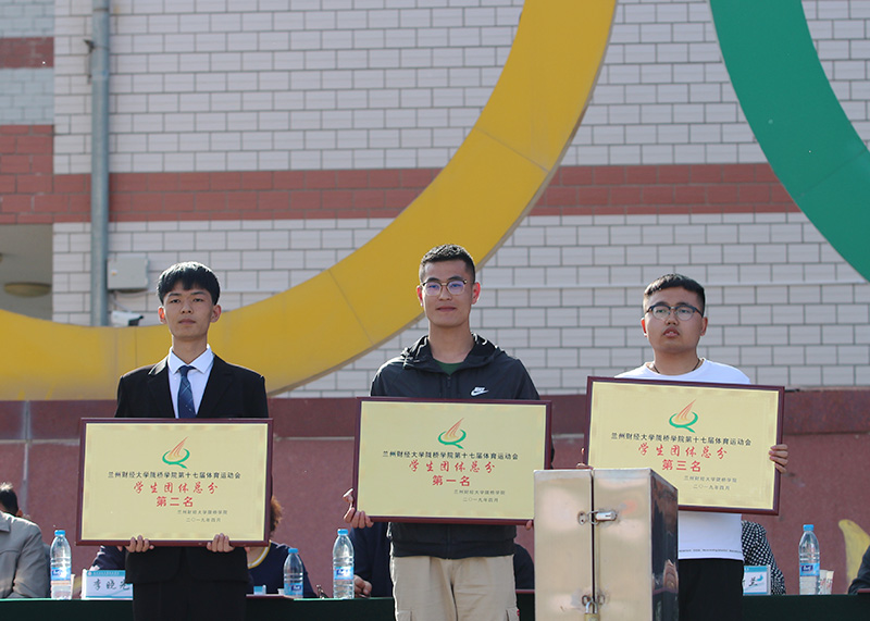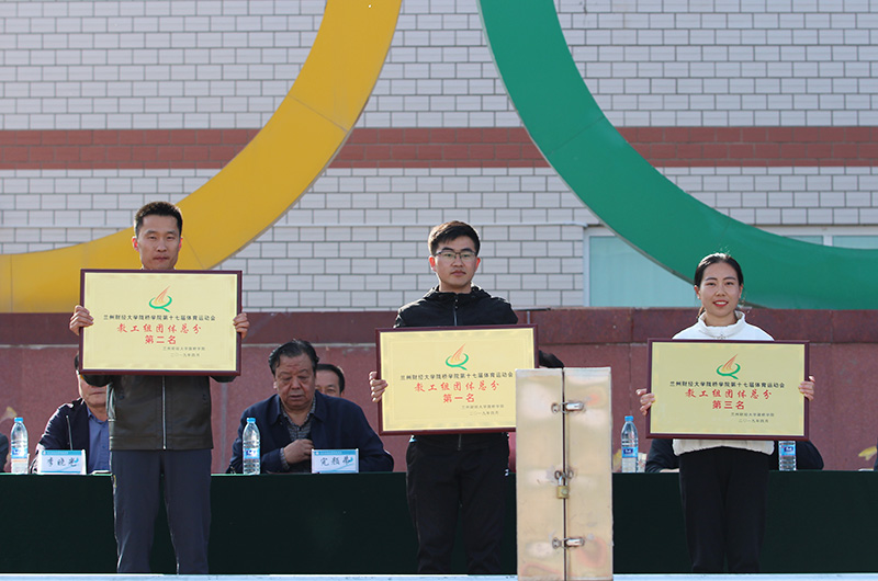闭幕式在嘹亮的国歌声中拉开帷幕,总裁判长南萍副教授宣读了各单位最终比赛成绩及获奖名单:经济贸易系获得教工团体总分第一名,财政金融系、信息工程系分别位列第二名、第三名;会计学系获得学生团体总分第一名,财政金融系、工商管理系分别位列第二名、第三名;土木工程系、经济贸易系、信息工程系获得“优秀组织奖”;法学系、艺术设计系、外国语言文学系获得“体育道德风尚奖”;土木工程系获得团体操表演一等奖,会计学系获得二等奖,工商管理系、财政金融系获得三等奖。董事长完颜弟研究员、常务董事李晓光同志、常务董事陆昀同志等学院领导为获奖单位进行了颁奖。