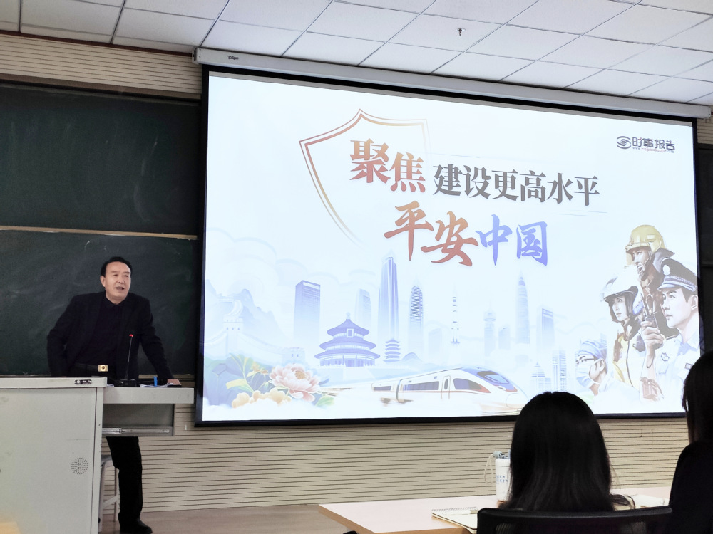 10月20日晚上,校长王华栋教授以“聚焦建设更高水平平安中国”为主题,为会计学院百余名学生授课。课堂上,王校长开门见山:以“什么是平安中国?”“为何要建设更高水平平安中国?”“党和国家为平安中国建设付出了哪些努力?”三个核心问题切入,引发学生思考。他结合近期社会热点案例与校园日常场景,从国家安全、社会稳定、人民幸福等多个维度,帮助学生理解平安中国的丰富内涵。同时,通过翔实的数据、鲜活的实例,系统梳理了平安中国建设的发展基础、显著成效与整体规划,带领同学们深入思考“建设更高水平的平安中国”的深层意义,让“平安中国建设,从我做起”的理念真正扎根学生心中。