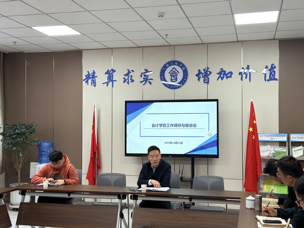 为全面了解会计学院在产教融合、学科建设、课程思政教学改革、人才培养及党风廉政建设等方面的工作落实情况,精准破解学院发展瓶颈,明晰下一阶段工作方向, 2025年10月22日下午,常务副校长宿光平教授深入会计学院进行走访调研,召开工作调研与推进会。会计学院院长王学龙教授主持会议,领导班子全体成员与各教研室主任全程参会。
