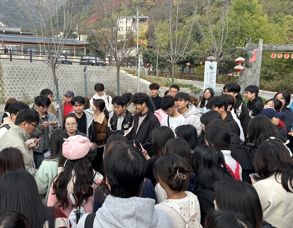 11月2日,团队前往古韵悠长的张坝古村落。教学重点从自然生态转向人文历史。同学们细致测绘传统民居的布局与肌理,并与村民交流,深刻体会到风景园林设计不仅是塑造空间,更是守护“乡愁”与延续文化。大家围绕“传统村落的活态保护与景观提升”进行了专题讨论。
