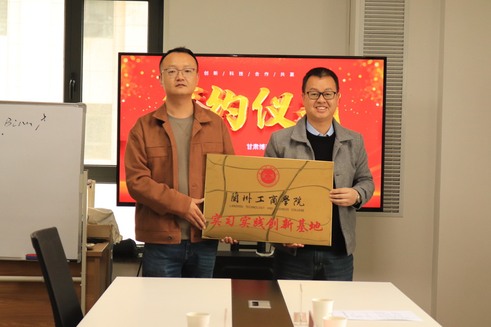 兰州工商学院土木工程学院党委副书记李剑、教学院长陈继强及教师代表马龙、种世娟,甘肃博迈信息技术有限公司总经理苗万龙、副总经理赵玉林、技术总监程明青等共同出席签约仪式。