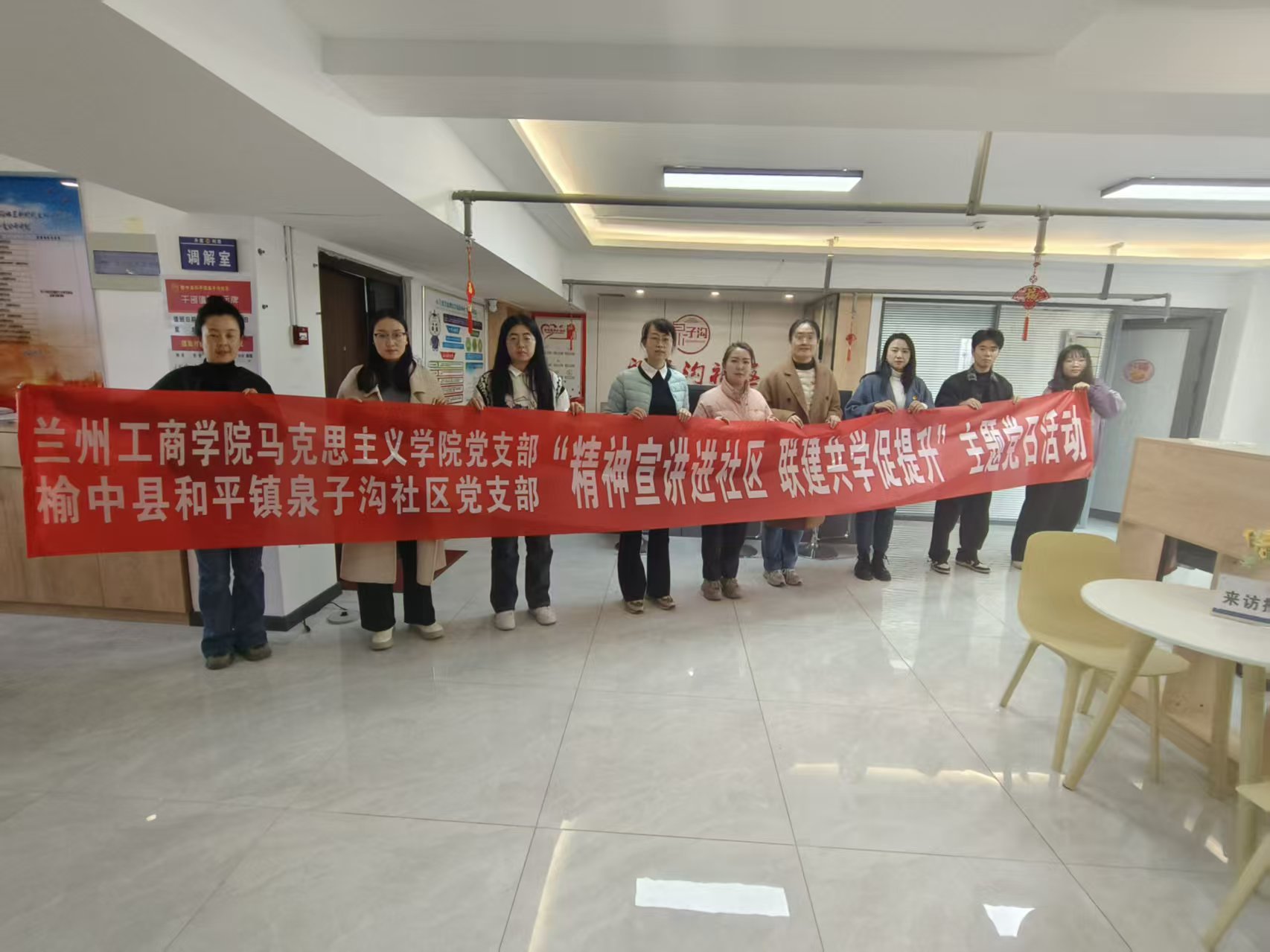 11月10日,马克思主义学院党支部与榆中县和平镇泉子沟社区党支部联合开展“精神宣讲进社区 联建共学促提升”主题党日活动,两个支部的党员代表和社区工作人员代表参加活动。