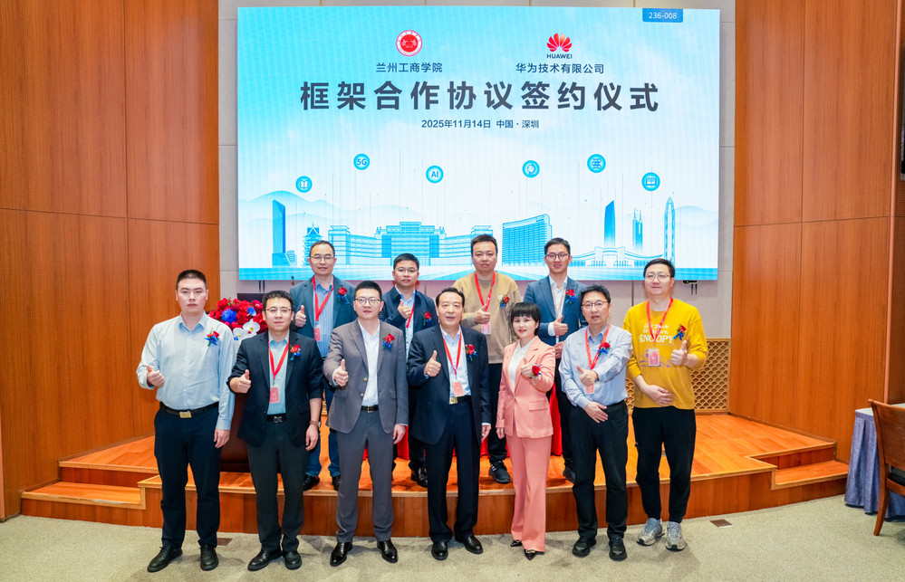 兰州工商学院与华为技术有限公司(以下简称“华为”)在深圳华为总部签署框架合作协议。根据协议,双方将深入整合各自优势资源,在探索兰州工商学院ICT人才培养、产教融合、现代产业学院建设、数智化转型等领域建立全面合作关系,开启双方深度合作新里程。