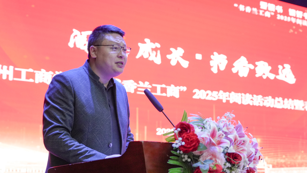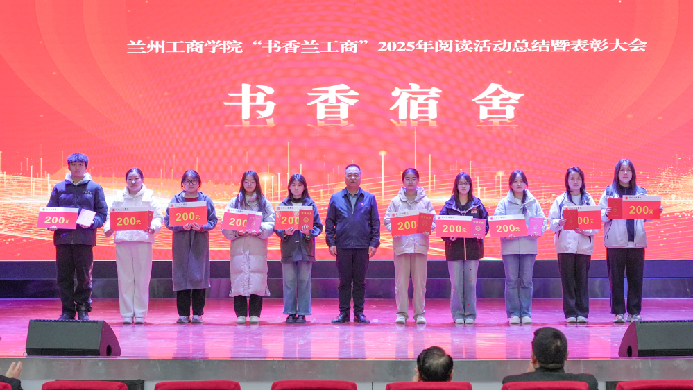 大会在庄严的国歌声中拉开帷幕。党委副书记郇东同志宣读了学校《关于表彰奖励“书香兰工商”2025年阅读活动“书香学院”“书香班级”“书香宿舍”的决定》。