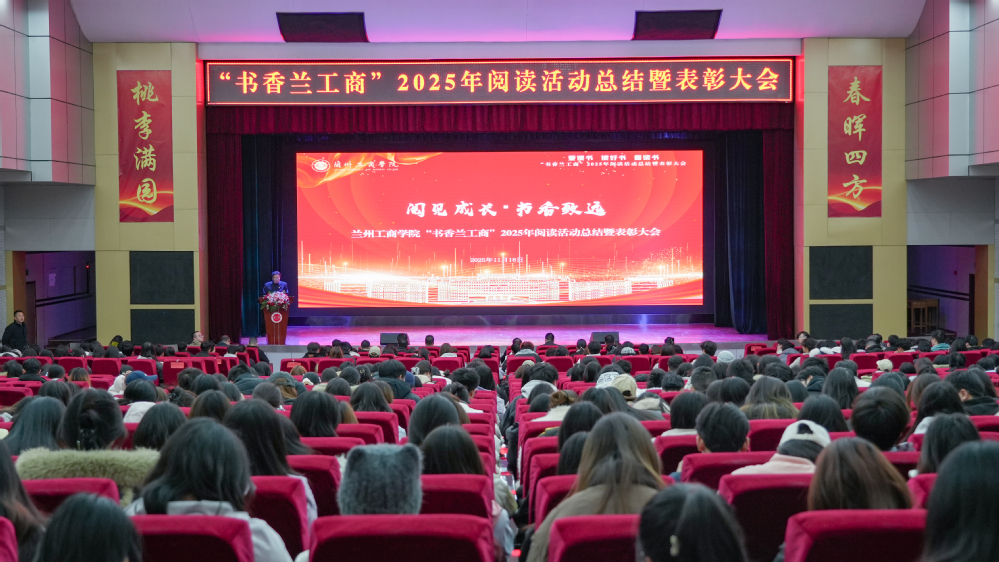 为全面总结兰州工商学院“书香兰工商”2025年阅读活动成效,表彰先进典型,巩固“爱读书、读好书、善读书”的校园文化氛围,11月18日下午,“书香兰工商”2025年阅读活动总结暨表彰大会在学校学术报告厅隆重举行。校长王华栋、党委副书记郇东、副校长康昱明、学校董事会督导委员会教学督导张春庆出席大会,校团委、教务处、学生处负责人,各二级学院相关负责人及获奖集体、个人代表共800余人参加会议。大会由图书馆负责人主持。