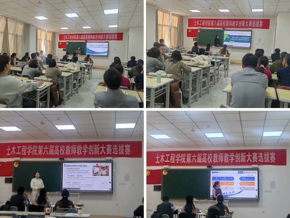 土木工程学院五个教研室分别推荐一个教学团队参加此次院级选拔赛,比赛环节中,五位主讲教师围绕教学理念、教学内容、课程思政、教学过程等方面进行了精彩的汇报讲解,展现了在AI时代背景下的教学创新探索。每位选手汇报结束后,三位评委分别从教学内容分析、学情分析、课过程与方法等角度进行了细致深入的点评,并提出具有建设性的优化建议,为教师后续备赛及日常教学改进提供了重要参考。