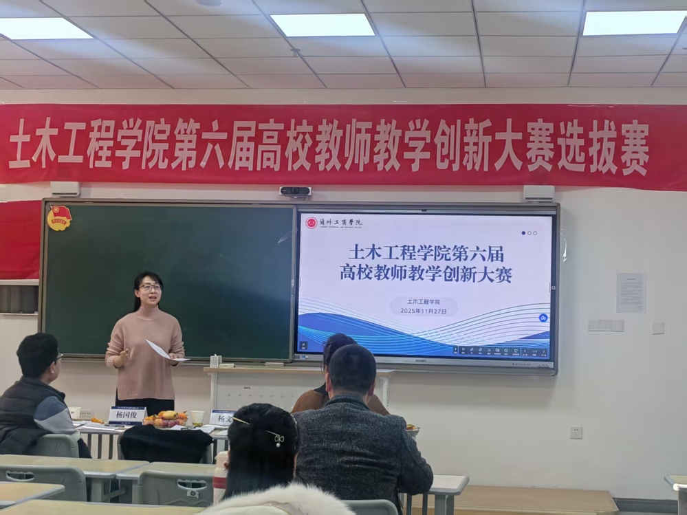 为激发教师更新教育理念及现代教学方法,11月27日,土木工程学院在综合教学楼B709教室举办了第六届高校教师创新大赛院级选拔赛。特邀兰州城市学院环境与城市建设学院副院长、国家注册一级造价工程师杨文娟教授,兰州理工大学课程思政教学名师杨国俊教授,及本院郭敏副教授担任评委,为参赛教师进行现场点评和指导。学院领导、参赛教师及全院教师参加了此次会议。