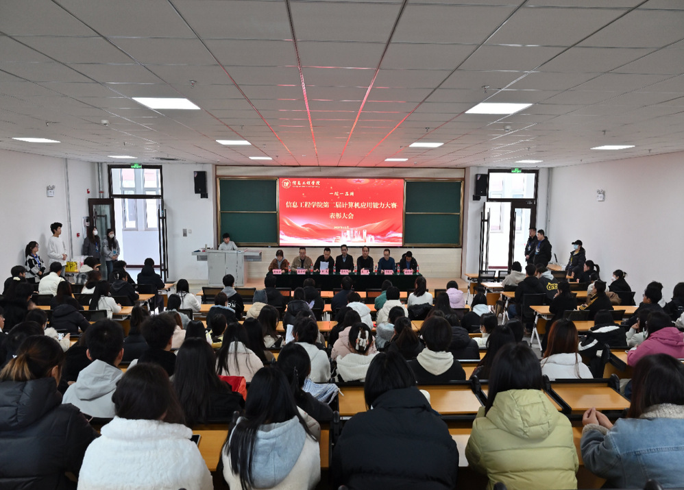 11月27日,信息工程学院第二届计算机应用能力大赛表彰大会在综合教学楼C502教室举行,标志着本届计算机应用能力大赛圆满落下帷幕,学院全体领导班子成员,参赛学生代表参加大会。大会由学院党委副书记姜力玮主持。