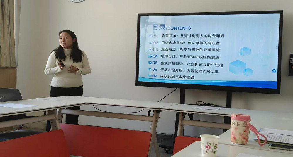 参赛教师围绕教学设计创新点、实践效果等核心内容,进行不超过12分钟的汇报展示,其中,宋蕾老师选择产教融合组赛道,以《刑法》为参赛课题,设计中充分整合行业资源,凸显产教协同育人特色;马可可老师聚焦人工智能融合教育组赛道,以《行政法与行政诉讼法》为课题,将人工智能技术系统性融入教学全流程,实现技术与课程的深度融合。