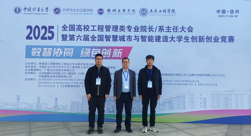 11月28日-30日,由教育部工程管理和工程造价专业教学指导分委会主办、中国矿业大学力学与土木工程学院和徐州工程学院土木工程学院共同承办的“2025年全国高校工程管理类专业院长/系主任大会”在江苏徐州中国矿业大学成功举办。土木工程学院教学院长陈继强、工程管理教研室主任魏雄飞、工程造价教研室主任王志童应邀参会,与来自全国各地的专家学者、行业代表齐聚一堂,共同探讨新时代工程管理类专业教育的发展与创新。