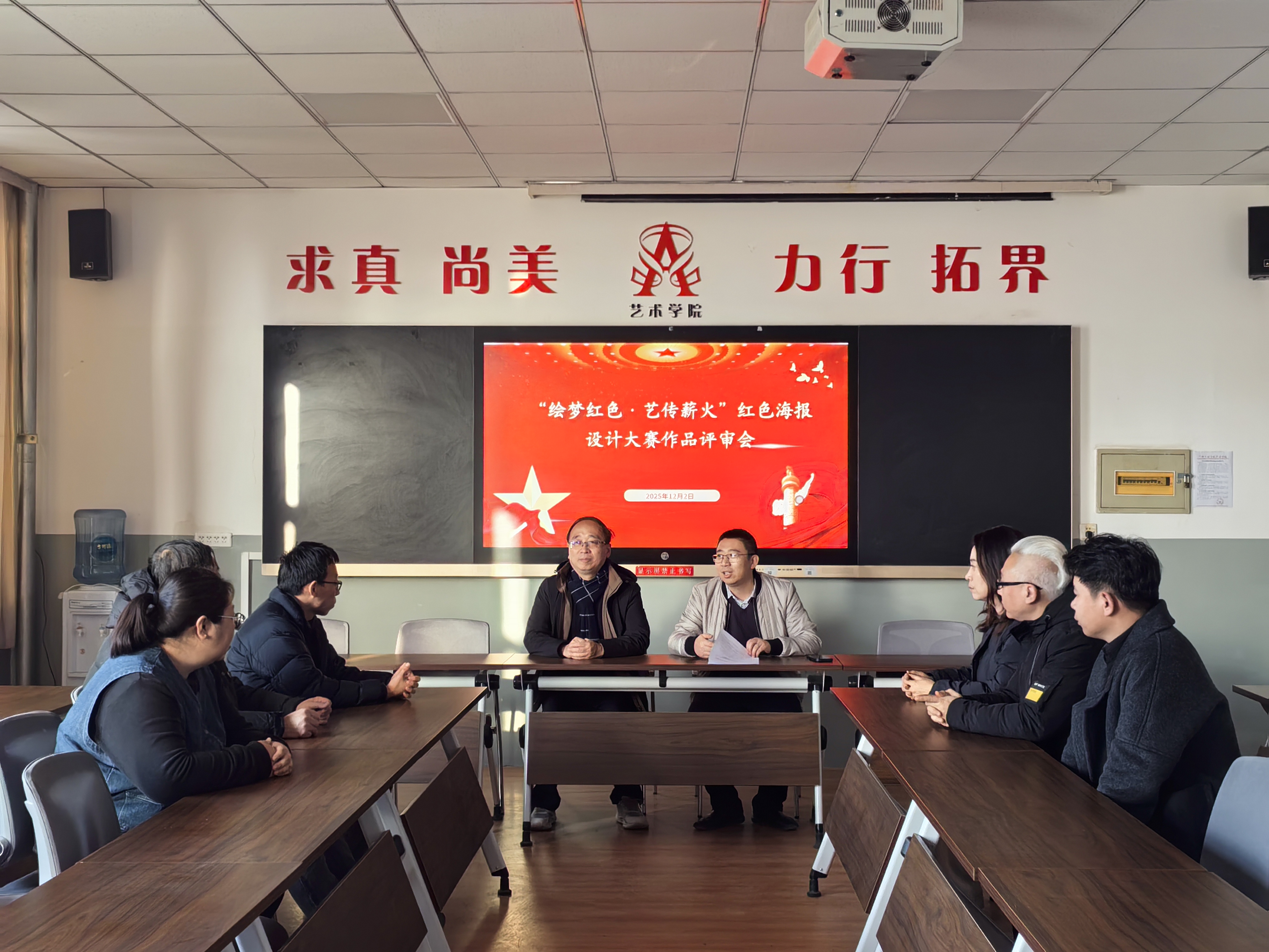 为严把赛事质量关,精准遴选兼具思想深度与艺术美感的红色佳作,切实推动爱国爱党教育与艺术创作深度融合,2025年11月17日,艺术学院“绘梦红色・艺传薪火”红色海报设计大赛评审会在2-410会议室隆重举行。本次评审会严格遵循大赛章程,组成了以院长杨明教授为组长、教学院长徐越教授、视觉传达设计教研室主任薛虹教授、刘波老师等6位老师为组员的专业评审团,以公平、公正、公开为原则,对征集到的参赛作品展开细致品鉴与综合考评。
