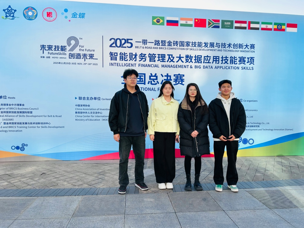 近日,2025一带一路暨金砖国家技能发展与技术创新大赛之智能财务管理及大数据应用技能赛项全国总决赛在安徽合肥财经职业学院圆满落幕。我校会计学院石小春老师带队,李麒武、王嘉宁、王宁三名同学组成的参赛团队历经两天的激烈角逐,凭借扎实的专业功底和默契的团队协作,最终荣获大赛优秀奖。