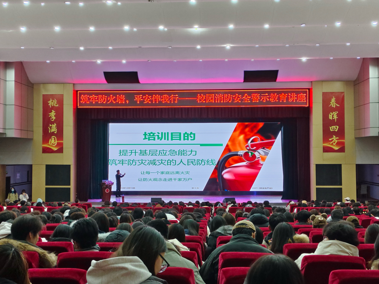 为进一步强化学生消防安全意识,提升火灾防范与自救互救能力,切实筑牢校园安全防线,12月15日,艺术学院特邀政安消防高级宣讲员、高级教官孙成伟同志莅临我校,在学术厅为全院学生开展“筑牢防火墙,平安伴我行”校园消防安全警示教育主题讲座。学院党委书记毕征、办公室主任李红艳及全体辅导员出席讲座,讲座由学院行政院长张德红主持。