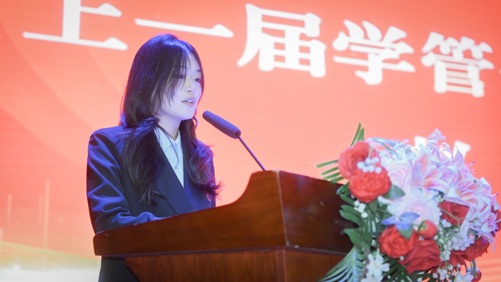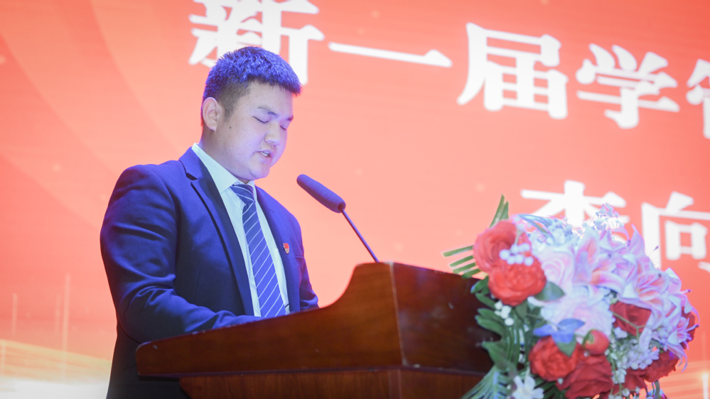 在随后进行的双创学院学生干部换届环节中,张浩院长宣读了新一届学生干部任命通知。大会简单而庄重地完成了工作交接:上一届学管会主席代表赵晴同学总结了过往工作,新一届主席李向东同学作了表态发言,表达了接续奋斗的决心。同时对上一届优秀学生干部、优秀集体等进行了表彰,并分别为获得“竞赛突出贡献奖”的学生个人和创新创业竞赛“优秀组织奖”的二级学院颁发了奖牌。