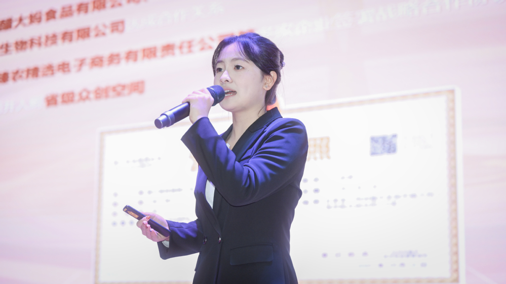 随后,大会进入优秀项目展示环节。曾获三创赛国赛二等奖的“臻选团队”代表韩丹、连续两年荣获中国国际大学生创新大赛银奖的朱雨涵,以及获该赛事铜奖的伍欢欢等3名学生先后登台进行项目展示。他们通过生动的讲述,分享了项目的创意起源、技术核心、市场前景与实践心得,充分展现了兰工商学子扎实的专业功底、敏锐的创新思维和卓越的实践能力,赢得了现场阵阵掌声。