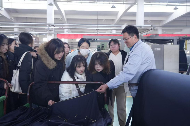 兰州三毛实业有限公司副总兼财务总监李建真、财务部部长董小霞及公司相关人员热情接待了会计学院师生。李总首先详细介绍了公司的发展历程和市场定位,通过看企业的宣传片让学生们更好地理解公司的发展与运营模式。接着,师生们在李总和董部长等人的陪同下,按工艺路线参观了生产现场,从原料库开始,现场参观了毛条高温染色、复精梳、纺纱、织布、染整五大生产流程。在原料车间,学生们观察了原材料毛条的挑选和储存;在每个生产车间,李总、董部长和随行的工作人员都给同学们耐心讲解了生产工序流程,展示了纺织工艺,让同学们对纺织生产行业有了直观的认知。