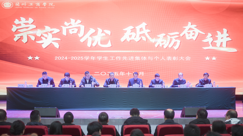12月29日下午,学校2024—2025学年“崇实尚优砥砺奋进”学生工作先进集体与个人表彰大会在学术报告厅隆重举行。党委书记雒建子、校长王华栋、行政常务副校长马义哈、教学常务副校长宿光平、党委副书记郇东、副校长王治和、董事会督导委员会张春庆、王渊涛等校领导出席大会。相关职能部门负责人,各二级学院党委书记、行政院长,全体辅导员老师,以及各学院学生代表、全体获奖个人及获奖集体代表共计800余人参加。大会由副校长康昱明同志主持。