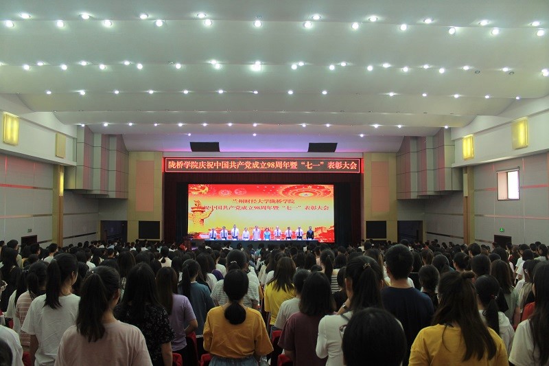 在建党98周年到来之际,为隆重纪念党的生日,学院党委于7月1日下午在学术报告厅召开庆祝中国共产党成立98周年暨“七一”表彰大会,隆重纪念我们党98年来的光辉历程,讴歌党的丰功伟绩;重温入党誓词,坚定理想信念;表彰先进,树立典型。大会对一年来在党建思想政治工作中涌现出来的3个先进基层党组织、3个思想政治工作先进集体、5名优秀党务工作者、5名优秀思想政治工作者和74名优秀共产党员进行了表彰。学院董事会领导、学院领导、院党委委员以及全院教师党员和学生党员参加了大会,大会由院长路文江主持。