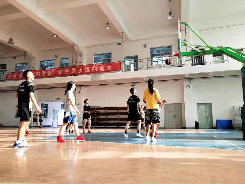 在篮球场上,运动员大汗淋漓,从跑步热身到投篮训练再到自由打赛,各个环节环环相扣。半蹲、起身、上跃、抛球,抛物线划过上空,队员们眼随球动、注意力集中。他们互相配合,在进攻防守传球中默契度不断磨合,团队凝聚力日益增强。队员们相信越努力,就会越幸运!