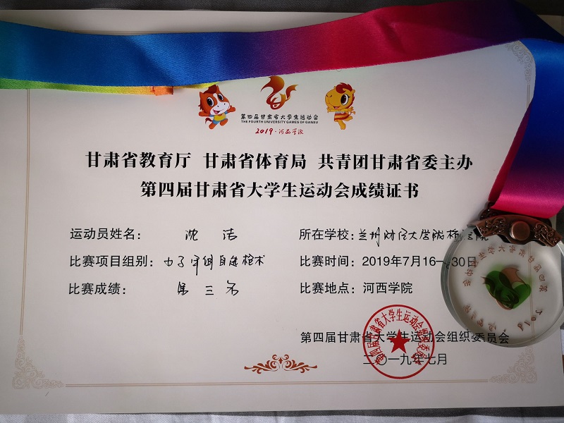 (5)在女子(甲组)自选枪术比赛中,沈洁同学夺得铜牌。