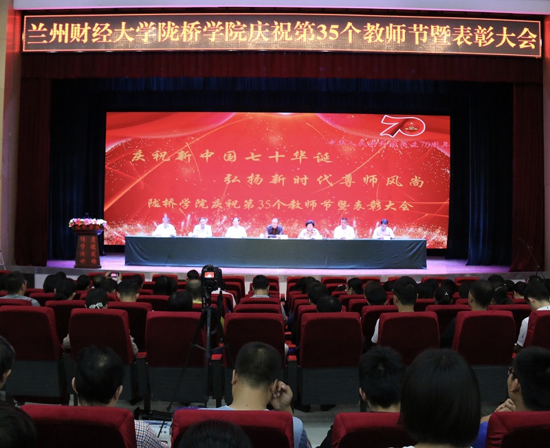9月10日,在第35个教师节来临之际,陇桥学院以“庆祝新中国七十华诞,弘扬新时代尊师风尚”为主题,隆重举行庆祝第35个教师节暨表彰大会。学院董事长完颜弟研究员和学院领导王新兰、路文江、马义哈、杨培权、郇东、燕宏出席会议,全体教职工参加了会议。会议由党委书记王新兰教授主持。