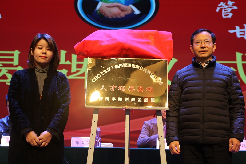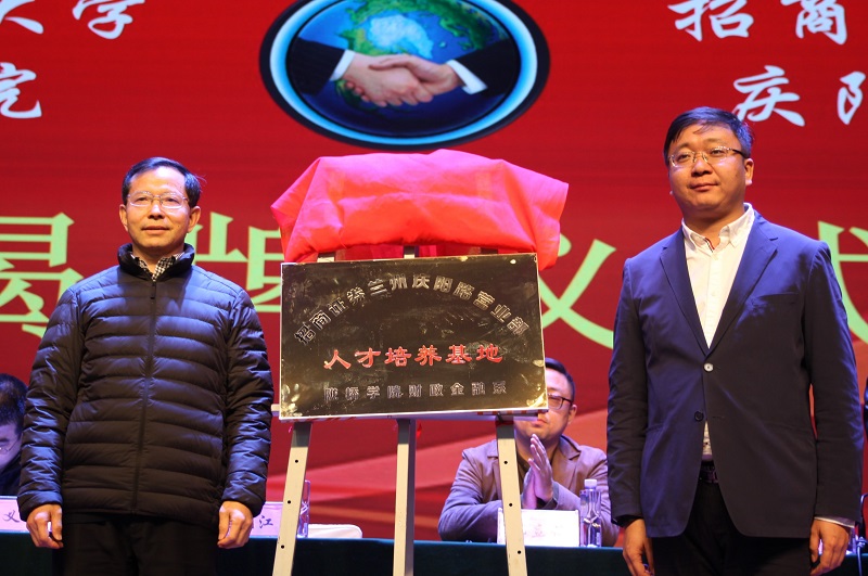 会上,学院大学生创新实践中心负责人首先宣读了《关于举办陇桥学院第八届金融文化节的通知》文件,对活动进行了安排部署。接着,财政金融系负责人分别与中国银行兰州市七里河中心支行、招商证券兰州庆阳路营业部、CBC(北京)信用管理有限公司甘肃分公司等3家企业代表签订了人才培养基地协议。随后,院长路文江分别与3家企业负责人共同为人才培养基地揭牌。