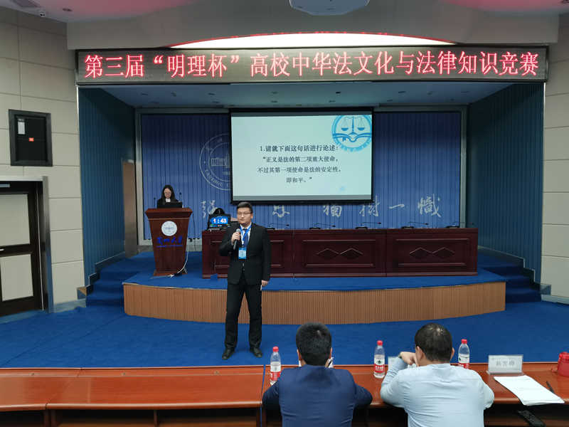 12月1日,由甘肃省教育厅和兰州大学共同举办的第三届“明理杯”高校中华法文化与法律知识竞赛在兰州大学法学院举行,本次比赛吸引了包括西北师范大学、西北民族大学、甘肃政法大学、甘肃中医药大学等在内的18所兰内院校参加,参赛人数近百人。我院法学系带队参加了本次比赛,经过一天的激烈角逐,我院取得非法学组第4名,法学专业组第5名的好成绩。方杨统同学获得个人二等奖的优异成绩,我院获得优秀组织单位荣誉称号。