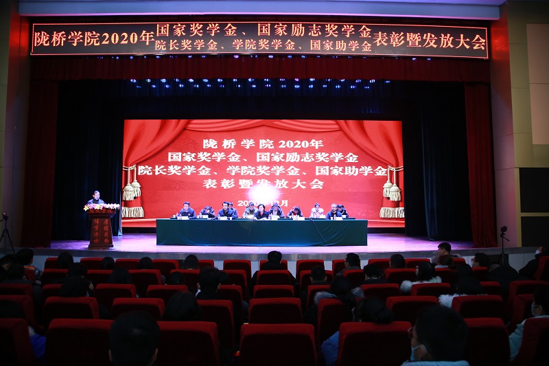 12月23日下午,陇桥学院2020年国家奖学金、国家励志奖学金、院长奖学金、学院奖学金表彰暨国家助学金发放大会在学术报告厅举行。党委书记王新兰、院长路文江、党委副书记郇东、副院长燕宏、院长助理茹作佳出席了大会,各党总支负责人、全体辅导员老师及400余名学生代表参加了大会。大会由王新兰主持。