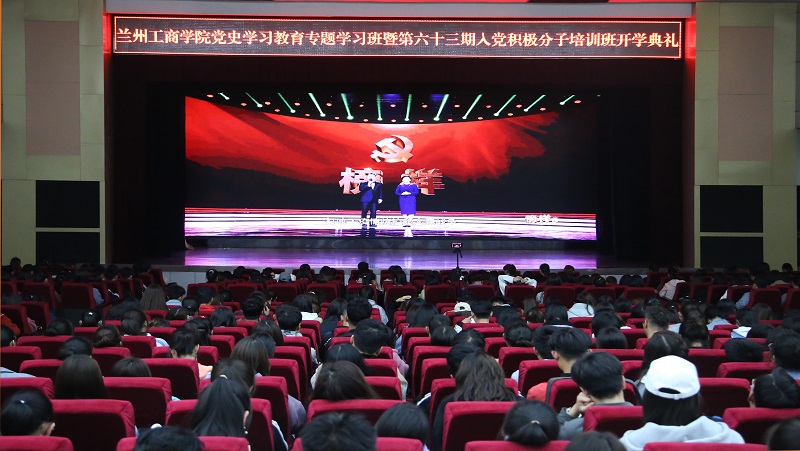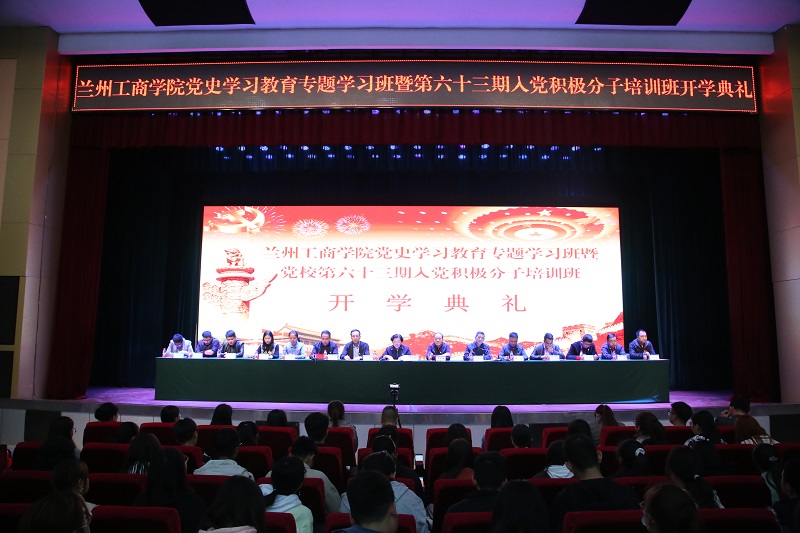 4月25日下午,兰州工商学院党史学习教育专题学习班暨第63期入党积极分子培训班开学典礼在学术报告厅举行。党委书记王新兰,常务董事、党委组织部部长李晓光,党委委员、党委宣传部部长杨培权,党委委员梁磊、刘伟,各党总支(副)书记出席典礼,各二级学院党务秘书、党委工作部老师及全体培训学员750余人参加了典礼。典礼由杨培权主持。