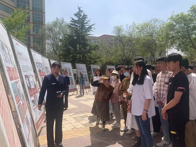 展览共包含“甘肃国统区坚持抗战的共产党人”“陇东抗日民主根据地代表人物”“参与甘肃抗战的爱国人士”“甘肃抗日救亡运动中的文化界人士”“甘肃籍在外抗战英烈”“参与甘肃抗战的国际友人”6个单元,20余副主题展板。活动中,师生们分组有序参观展览,认真倾听讲解员生动精彩的讲解,一幅幅革命图片、一个个革命先烈、一件件革命事迹,把大家带回到峥嵘的革命岁月。