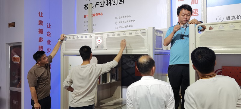 完颜辰树一行深入工厂实地查看学生宿舍设施设备生产原材料、生产工艺、环保状况、安全舒适情况等。并与企业相关负责人进行了座谈,他就我校计划逐步更新学生宿舍硬件设施,改善学生住宿条件,推动学生宿舍服务管理标准化,把学生宿舍建设成“安全舒适、整洁优雅”的宜居场所,增强宿舍育人功能,引导学生形成良好的生活学习习惯,最终实现立德树人的教育目标等与企业有关负责人进行了交流。企业负责人对我校的到来表示热烈的欢迎,并对我校为学生的关怀、关注和办学理念给予了高度赞赏,希望与我校建立合作关系,共同为学校宿舍环境的提升做出努力。