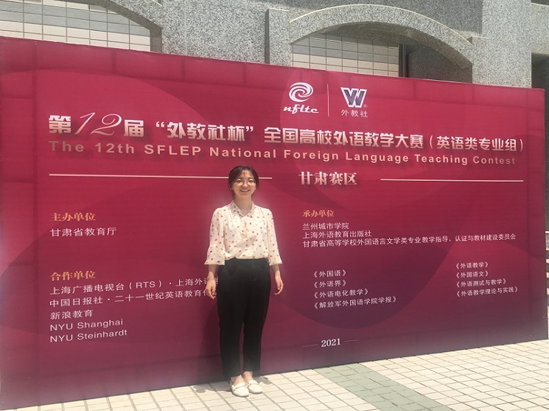 近日,第十二届“外教社杯”全国高校外语教学大赛(外语类专业组)甘肃赛区比赛落下帷幕,我校教师张蓉、靳亚博分别荣获“英语专业组”和“商务英语专业组”三等奖。本次比赛由甘肃省教育厅主办,兰州城市学院承办。比赛分英语专业组和商务英语专业组两个组别,共有来自20所本科院校的39位选手参加了比赛。