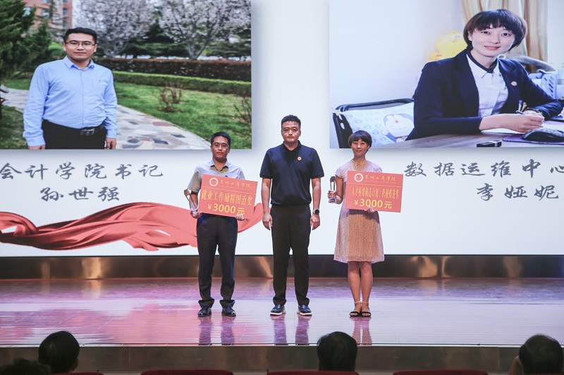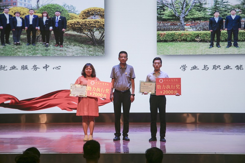 会上,董事长、校长完颜弟为获得就业考研工作“卓越贡献奖”的外语学院、经济学院、信息工程学院、土木工程学院颁奖,为获得优秀教案一等奖的教师颁奖;副董事长、常务副校长完颜辰树为获得“砥砺耕耘奖”的优秀考研学业指导教师、获得“就业工作励精图治奖”、“《人才桥梁输送计划》积极推进奖”的个人颁奖,为获得“奋发成才奖”的考研优秀学生代表颁奖。常务董事李晓光、陆昀分别为获得“最佳保障奖”的集体及“优秀教案二等奖”“优秀教案三等奖”的教师颁奖;执行校长路文江为获得“勠力执行奖”的就业指导中心、学业与职业能力发展处颁奖;党委副书记郇东为获得“立德树人奖”的优秀辅导员颁奖;副校长燕宏、徐运敏、茹作佳分别为获得“优秀教案三等奖”的教师,获得“爱生奉献奖” 的优秀辅导员和获得 “贴心服务奖”的优秀岗位开发员颁奖。