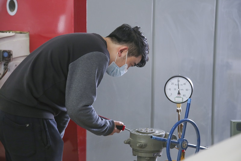 在燃气锅炉房,完颜辰树对锅炉供暖准备、锅炉燃烧机、锅炉辅机运行、循环泵运行及锅炉房值班等情况,逐一进行了认真地检查和询问,要求后勤管理处严抓供暖安全工作,为全校师生及时送去温暖。完颜辰树提出了三点要求:一是要加强学习,建设平安校园;二是要加强沟通,在供暖过程中和各部门保持密切联系,做好应急预案,确保供暖服务工作有序、平稳的开展;三是要强化维修,在供暖过程中,发现跑、冒、滴、漏和暖气不热的情况时,一定要第一时间进行维修。