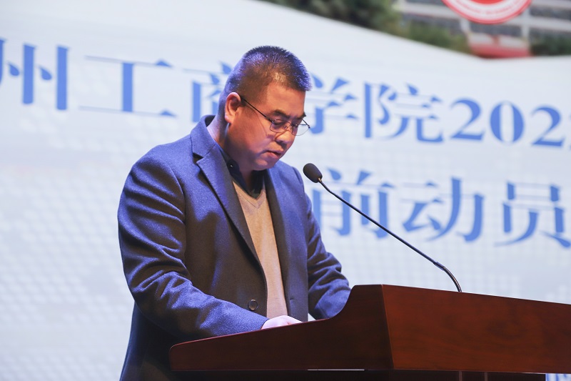 为了进一步增强2022年考研学子考研信心,鼓励学生向考研发起最后的冲刺,学校于12月9日下午在学术报告厅举办了考研学子考前动员大会。学校副校长马义哈出席动员大会并代表学校做了动员讲话。教务处、学业与职业能力发展处负责同志,各二级学院院长、党总支书记、辅导员老师及900名2018级考研学生参加了动员大会。会议由校长助理尚飞主持。