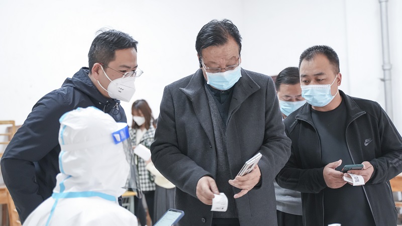 下午15时,全员核酸检测工作正式开始。董事长、校长完颜弟研究员亲自来到现场,他代表学校对检测工作的有序开展给予了充分的肯定,对医务工作者们的无私付出、连续奋战精神表示亲切的慰问。