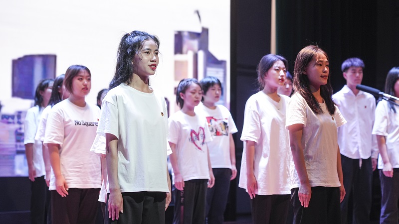 晚会以“青春召集令”为主题,分为“初心力量”“青春之路”“绽放未来”三个篇章。其中,学生合唱《错位时空》(五四版),委婉清亮、悠扬动听,鼓励毕业生铭记爱国之心,厚植爱国之情、弘扬爱国之志,引发师生共鸣。江南小调《秦淮景》,用一袭旗袍述说着一段回忆和传奇,刚柔并济、催人奋进。合唱《星辰大海》(建党百年版),唱响了“气壮志不移,何惧艰苦多”的赤胆忠心,挺立“舍生忘死、命运与共”的民族脊梁。朗诵《今天,我们毕业了!》,学子们用坚毅的声音宣告,将以实际行动让母校放心,绝不辜负母校的培养,时刻铭记母校教诲,以优秀的业绩彰显厚德载物、博学济世的校训精神。