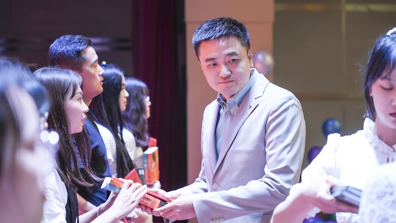 随后,副董事长完颜辰树带着学校的祝福,为今年外语学院成功上岸的9名学子颁发“考研之星”荣誉证书及奖品。