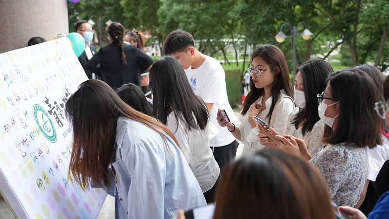 19点30分,“感恩一路有你”主题红毯入场仪式在报告厅前启动,任课教师携毕业生走过红毯,在签名墙签字留念,定格美好回忆。