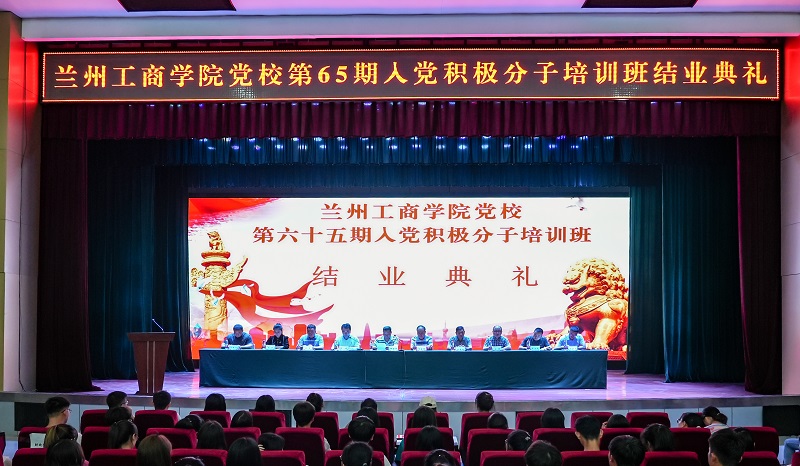 6月21日下午,兰州工商学院党校第六十五期入党积极分子培训班结业典礼在学术报告厅举行。学校党委书记雒建子,学校董事会常务董事、组织部部长李晓光,党委副书记郇东,党委委员杨培权及各党总支书记出席典礼,各学院党务秘书、党委组织部老师及全体培训学员参加了典礼。典礼由党委副书记郇东主持。