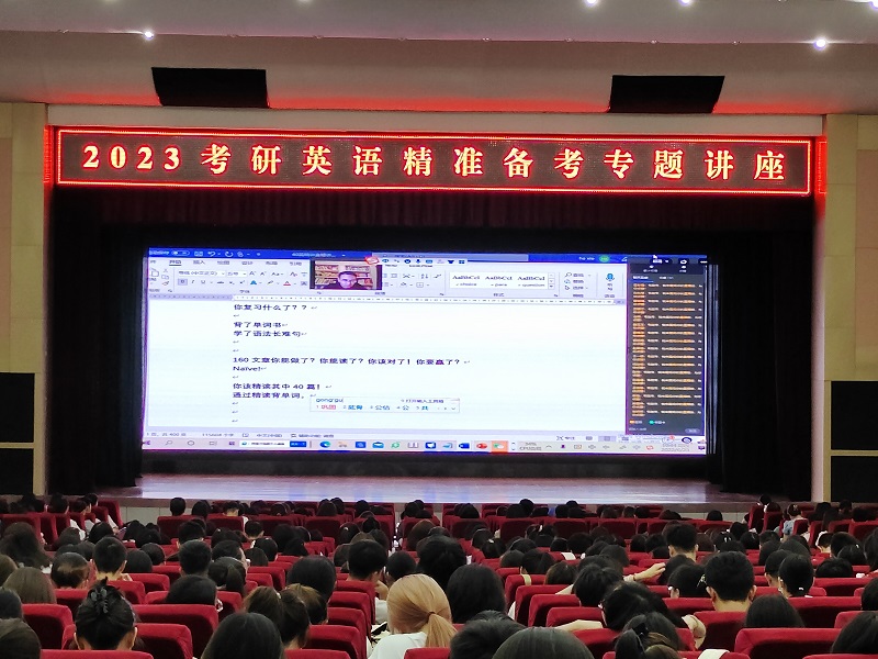 为进一步帮助学生明确考研目标,坚定考研意志,增强考研信心,掌握备考方法,6月23日晚学校特邀请全国考研英语辅导名师何凯文为我校2023届考研学生做了题为“2023考研英语精准备考”的专场讲座。本次讲座采用钉钉在线直播方式在学术报告厅和图书馆考研自习室同步进行,共有1200余名学生参与并聆听了讲座。